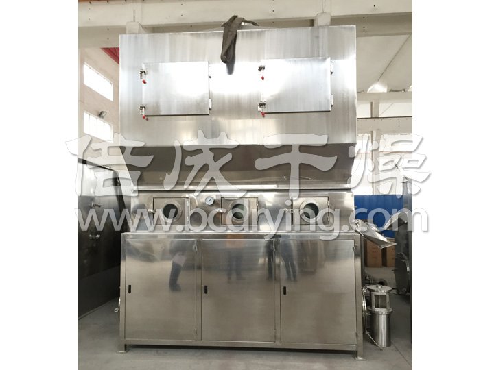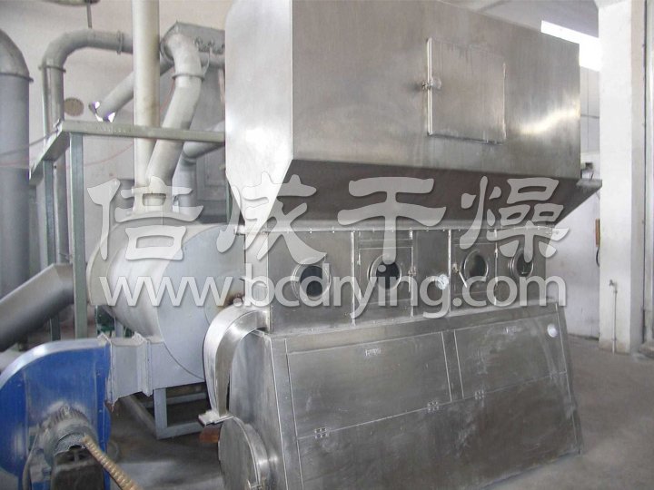 潔凈的熱風(fēng)經(jīng)閥板分配進(jìn)入床體內(nèi),從加料器進(jìn)入的濕物料被熱風(fēng)形成沸騰狀態(tài)。由于熱風(fēng)與物料廣泛接觸,增強(qiáng)了傳熱傳質(zhì)的過(guò)程,因此在較短時(shí)間內(nèi)就可干燥。如用連續(xù)型,物料從床體的一頭進(jìn)入,經(jīng)過(guò)幾十秒至幾分鐘沸騰干燥,自動(dòng)從床體另一頭流出。本設(shè)備一般進(jìn)行負(fù)壓操作。