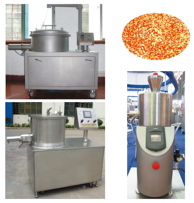 本機是通過設(shè)置旋轉(zhuǎn)離心盤、鼓風(fēng)機、氣動噴槍,將濕顆粒制成美麗的球丸。將前道工序做成的濕顆粒投入旋轉(zhuǎn)離心盤內(nèi),啟動鼓風(fēng)機后再將旋轉(zhuǎn)離心盤啟動,使?jié)耦w粒受到環(huán)隙空氣浮力、旋轉(zhuǎn)離心力、自身重力作用,呈環(huán)周繩股狀運動,從而形成真球度極高的球丸。旋轉(zhuǎn)盤自動升降,使物料的收集和制丸速度大大提高。