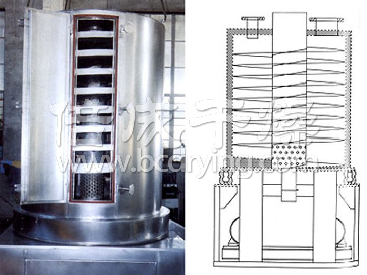 ●物料沿螺旋床自下而上作圓周運(yùn)動的同時,自身也產(chǎn)生跳躍,從而增加了物料與熱風(fēng)的接觸,增強(qiáng)了干燥效果。