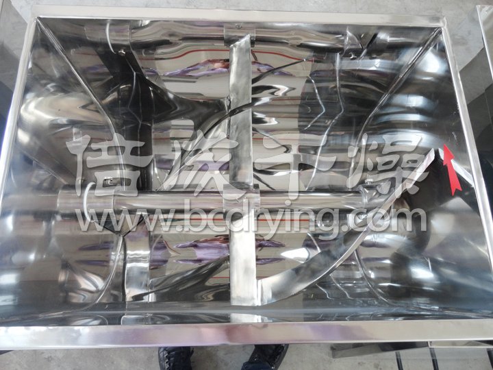 ◎本機(jī)與物料接觸處均采用不銹鋼制造,槳葉與桶身間隙小,混合無死角,攪料軸兩端設(shè)有密封裝置,能防止物料外瀉。